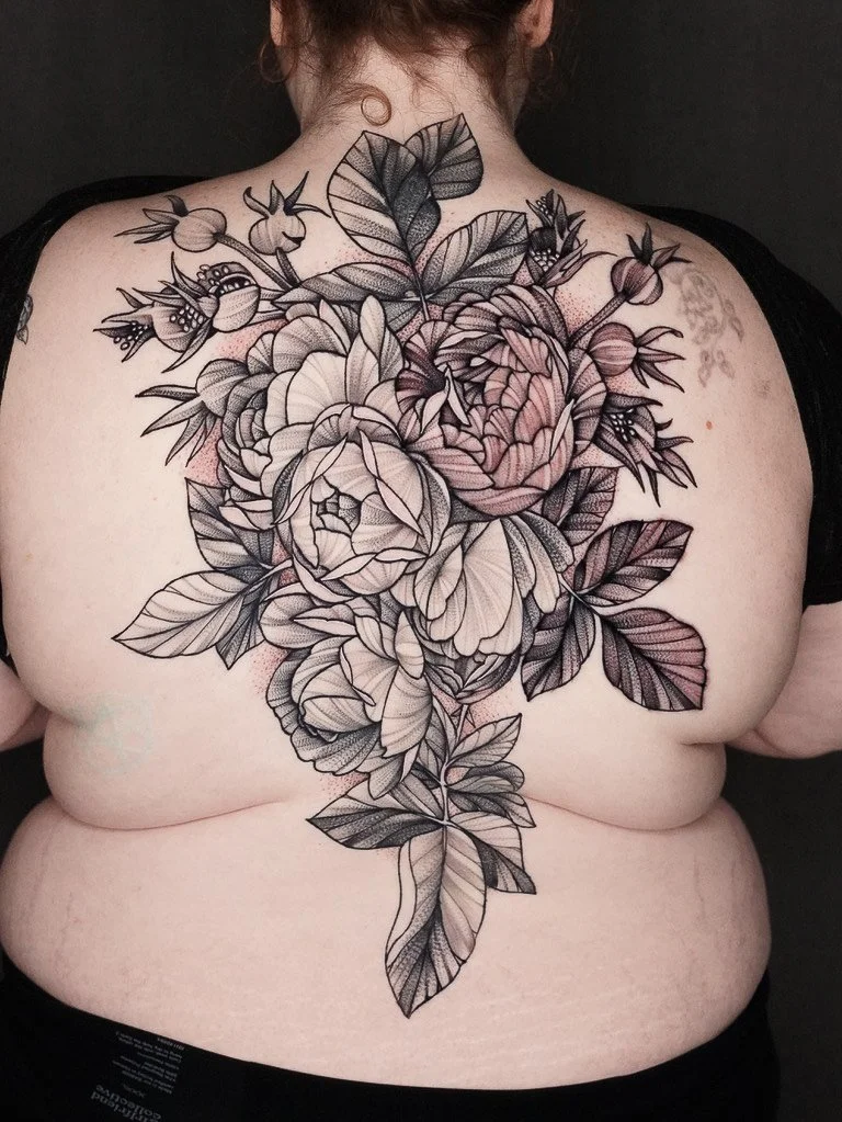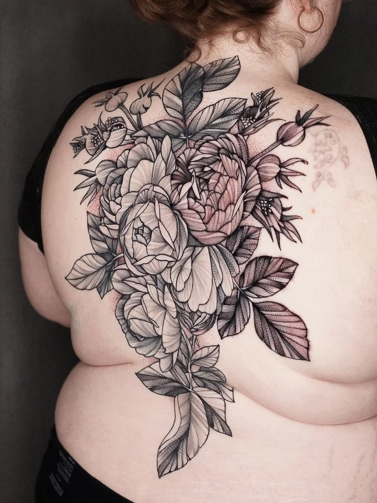 These tattoos take at least two sessions to complete. Every session is around 4 - 6 hours of tattoo time. Measuring, blueprinting, and lining are completed during the first session. Some shading may be completed during the first session as well.